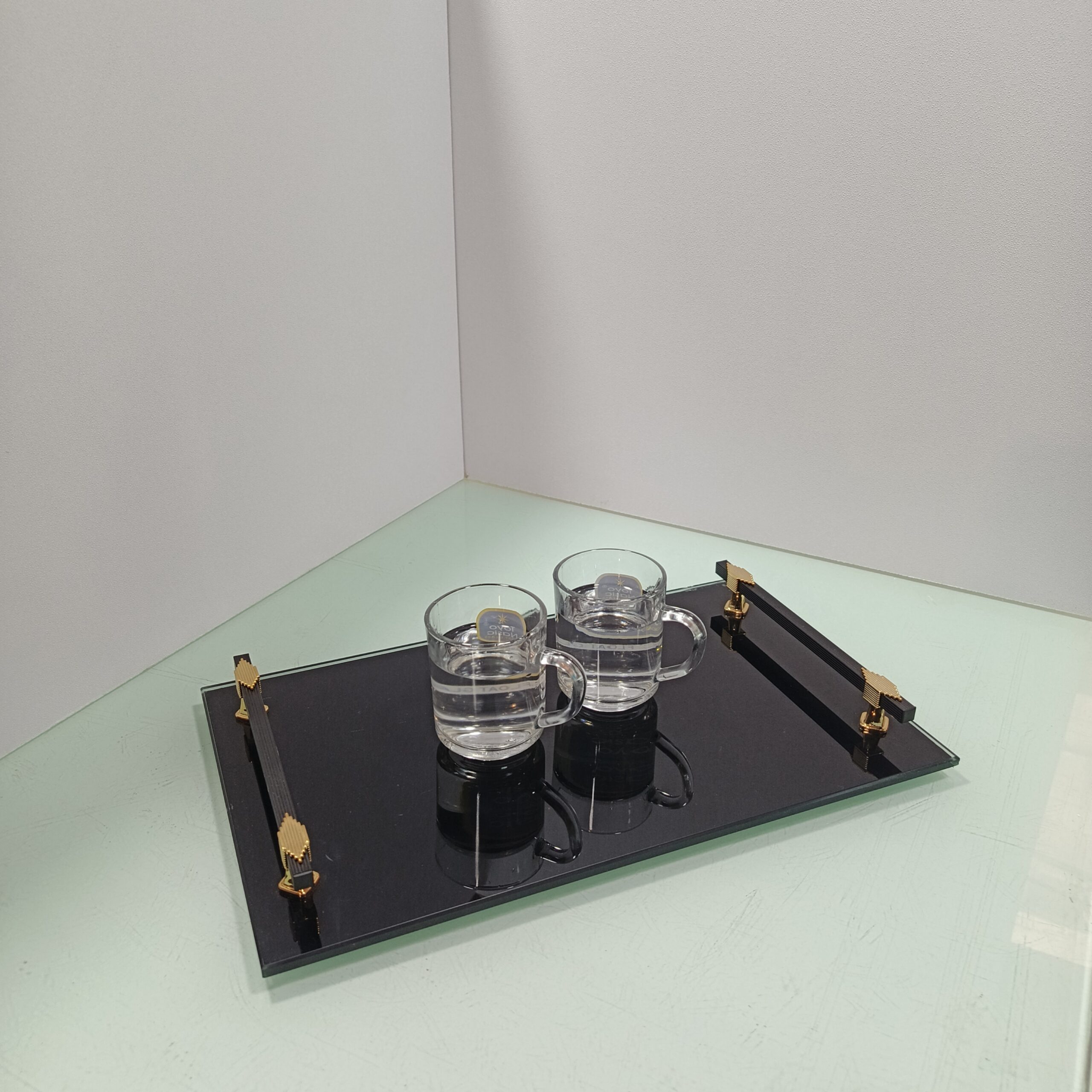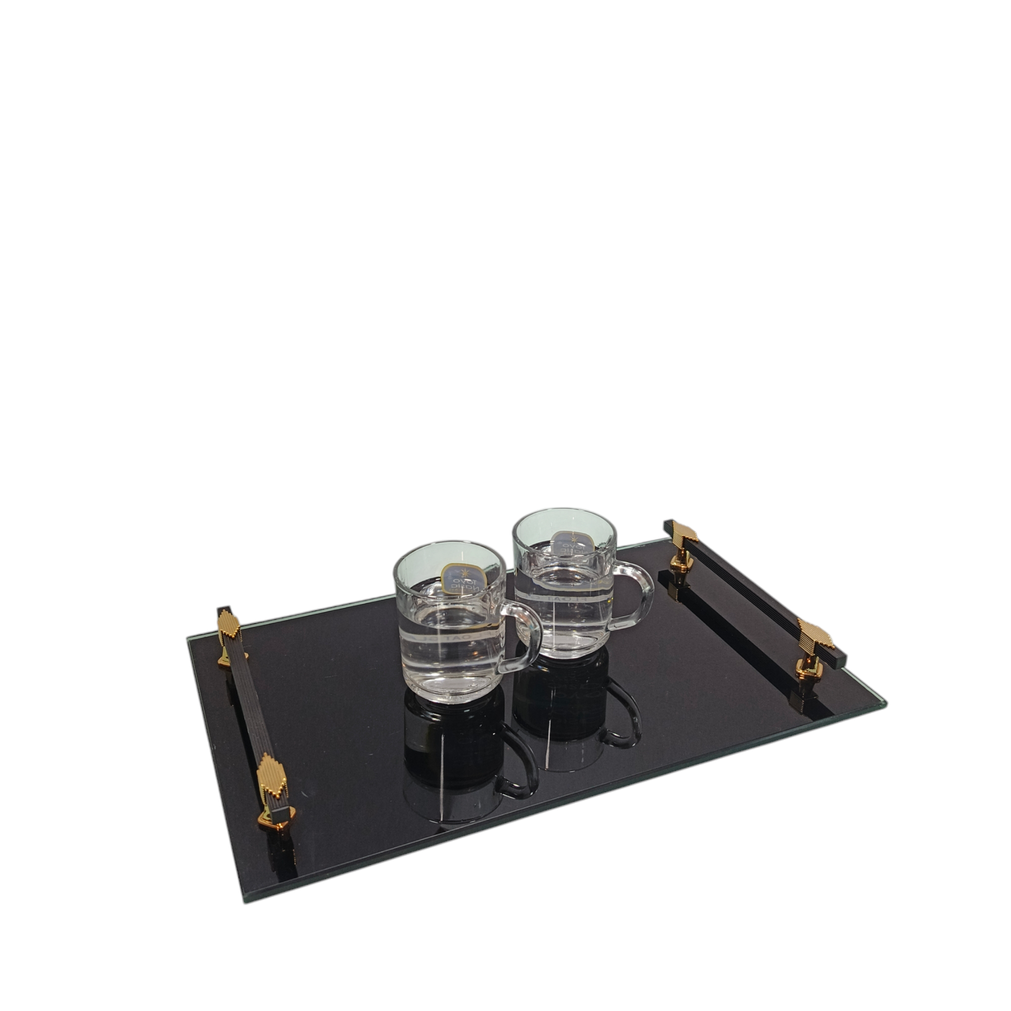 A black glass tray is a sleek and modern decorative or functional piece, often used for organizing, serving, or displaying items. It features a smooth, glossy surface that enhances its luxurious appearance, making it perfect for contemporary spaces. Whether used for serving drinks, holding perfumes, or as a centerpiece, its dark, reflective finish adds elegance and sophistication to any setting. Available in various shapes and sizes, a black glass tray effortlessly complements minimalist, modern, or even industrial aesthetics.